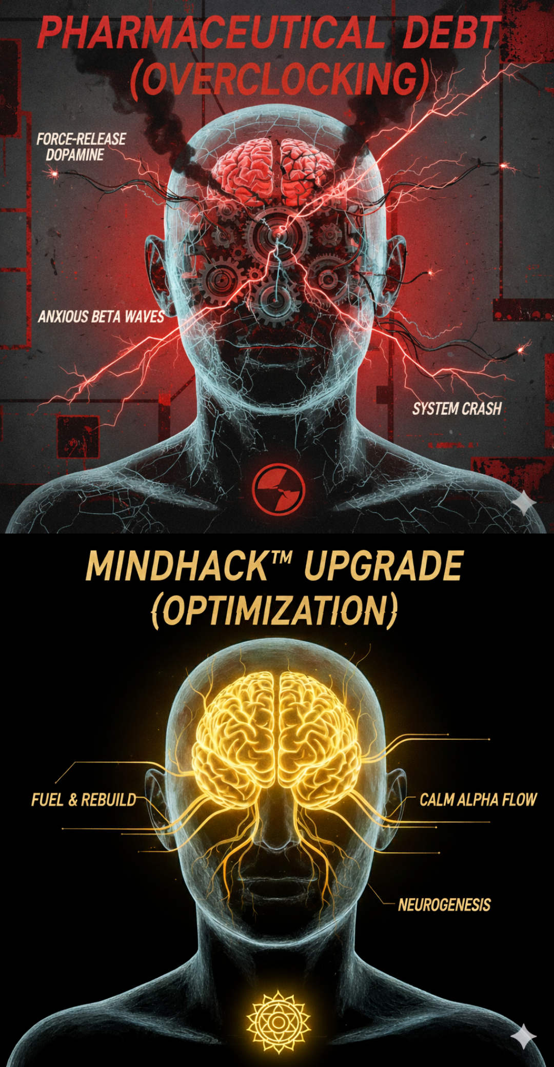 Stimulants are crude "overclocking." Mindhack™ is precision engineering.