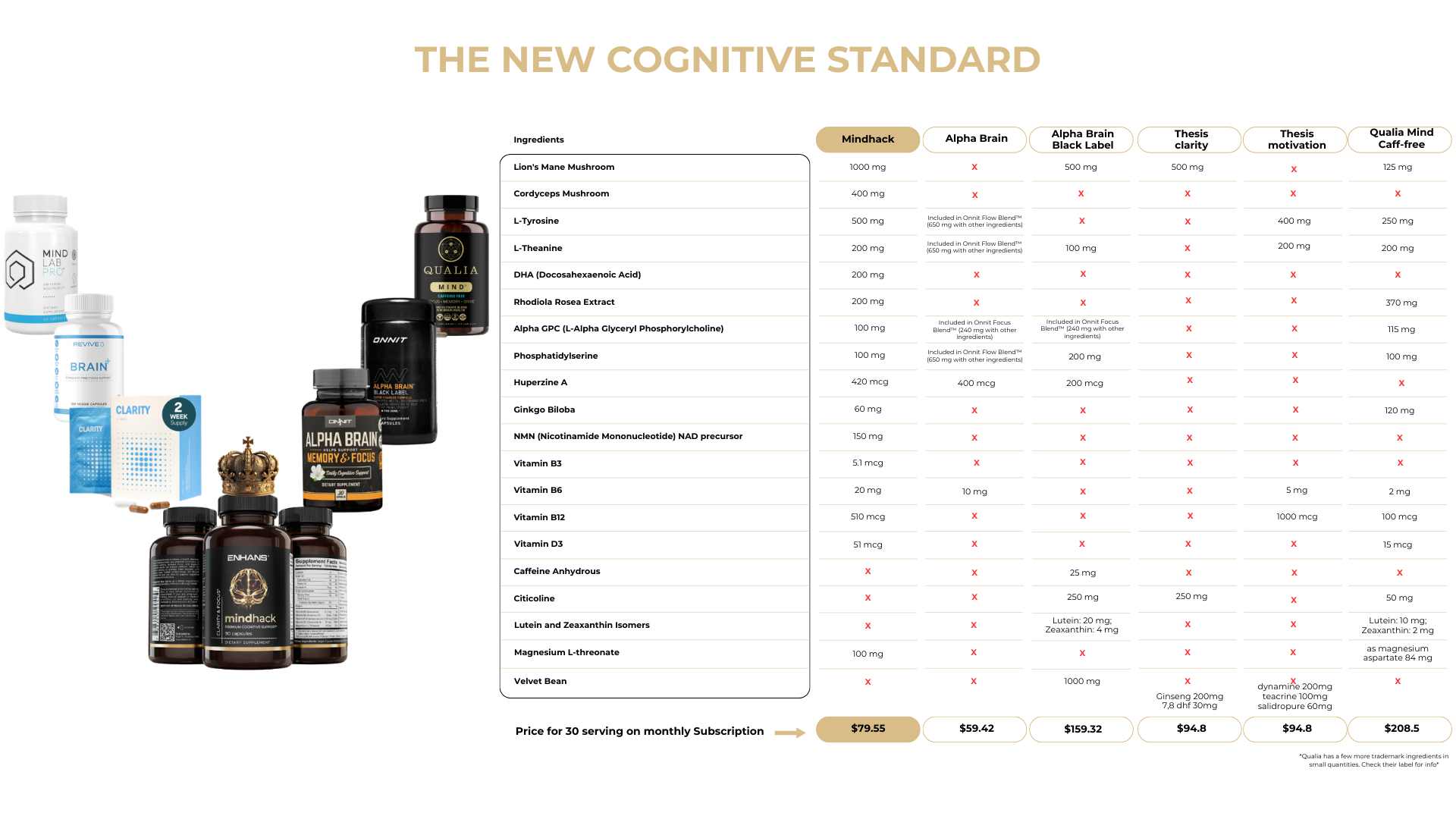 Bryan Johnson’s famous "Blueprint" protocol utilize 8 Mindhack™ ingredients he uses in his own protocol: